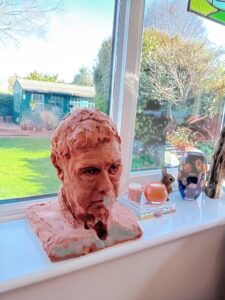 Then I got very addicted to all the number of courses. The manager and his wife ran it beautifully. They had a lot of very committed crafts people teaching and they did a lot on languages and all sorts of things; the whole place had a fantastic buzz around it. When the courses came out, you had to rush to book them because they would be oversubscribed. It was a lovely old site, the building itself fantastically inspirational, near the river and they didn’t only offer local courses but also residential courses. They had a fantastic canteen with really good food and about three employees there I think and in addition they had a ground floor café which was privately run. The café was in a separate building but near the river, and there was Jurnet’s Bar as well. You would be in the café and talk to someone else who was doing a different course. There were a variety of courses including wine tasting, and history courses, sewing and the bit that I liked the most which was the sculpting. I joined a summer sculpture class because one of my hobbies was making miniatures with while my autistic son was around. I wanted to make the faces more realistic. They were only 12th scale, but I just couldn’t get the face right. I was doing Carter discovering Tutankhamun.